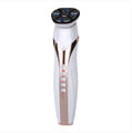 This is a multifunctional household facial massage and rejuvenation machine. It combines a variety of advanced technologies such as red, blue, and green LED light therapy, RF skin tightening for collagen boosting, Micro-current for wrinkles and fine lines, and vibration to provide support and help for anti-aging, anti-wrinkle, anti-spot, and anti-pigmentation of the face. Long-term and regular use can keep your skin energetic and healthy.